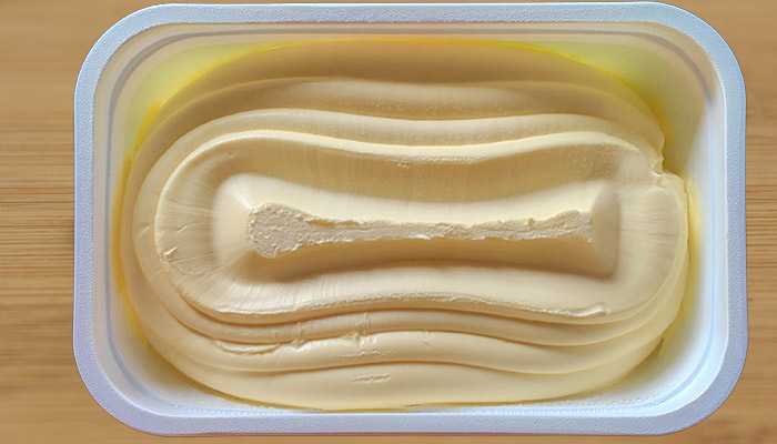 黄油是乳脂油,简称乳脂,也称为白脱油。黄油是从稀奶油中提炼出来的一种油,可供提炼的必须是成熟的稀奶油,在制作时将牛奶中所含的稀奶油与脱脂乳分离。在制作过程中不断搅拌,所以香味更加浓郁,即常用做食品调味剂。